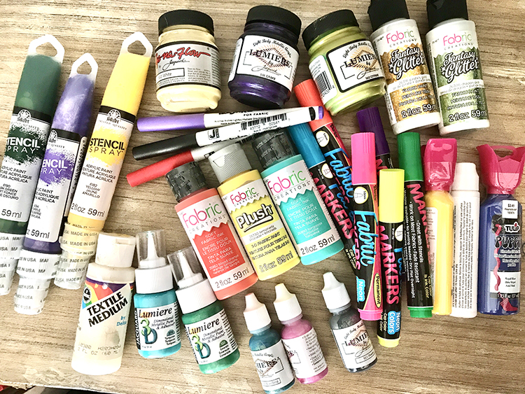Use dedicated fabric paint (also called textile paint). It is specially formulated to be flexible, washable, and permanent when properly applied and heat-set. Regular acrylic or craft paint can work with modifications, but it often cracks, stiffens the fabric, or fades after washing.